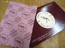 柔らかいフェルト地に微粒子の研磨剤を含ませたもので、シルバーの表面を軽くこするだけで簡単に黒ずみを除去し輝きを取り戻します。