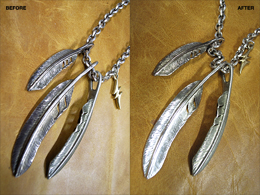 通常使用での汚れや黒ずみ、小さなキズなどは、簡単なお手入れでシルバー本来の輝きを取り戻す事が可能です。