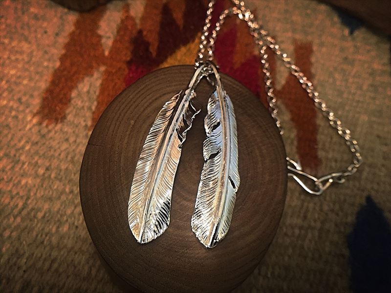 ネイティブ王道を行く、フェザーをブラス(真鍮)で作り、シルバーメッキ(ロジウムメッキ)をかけた一品です!!メッキなので、黒く経年変化しない不変的な変わらぬ輝き!!